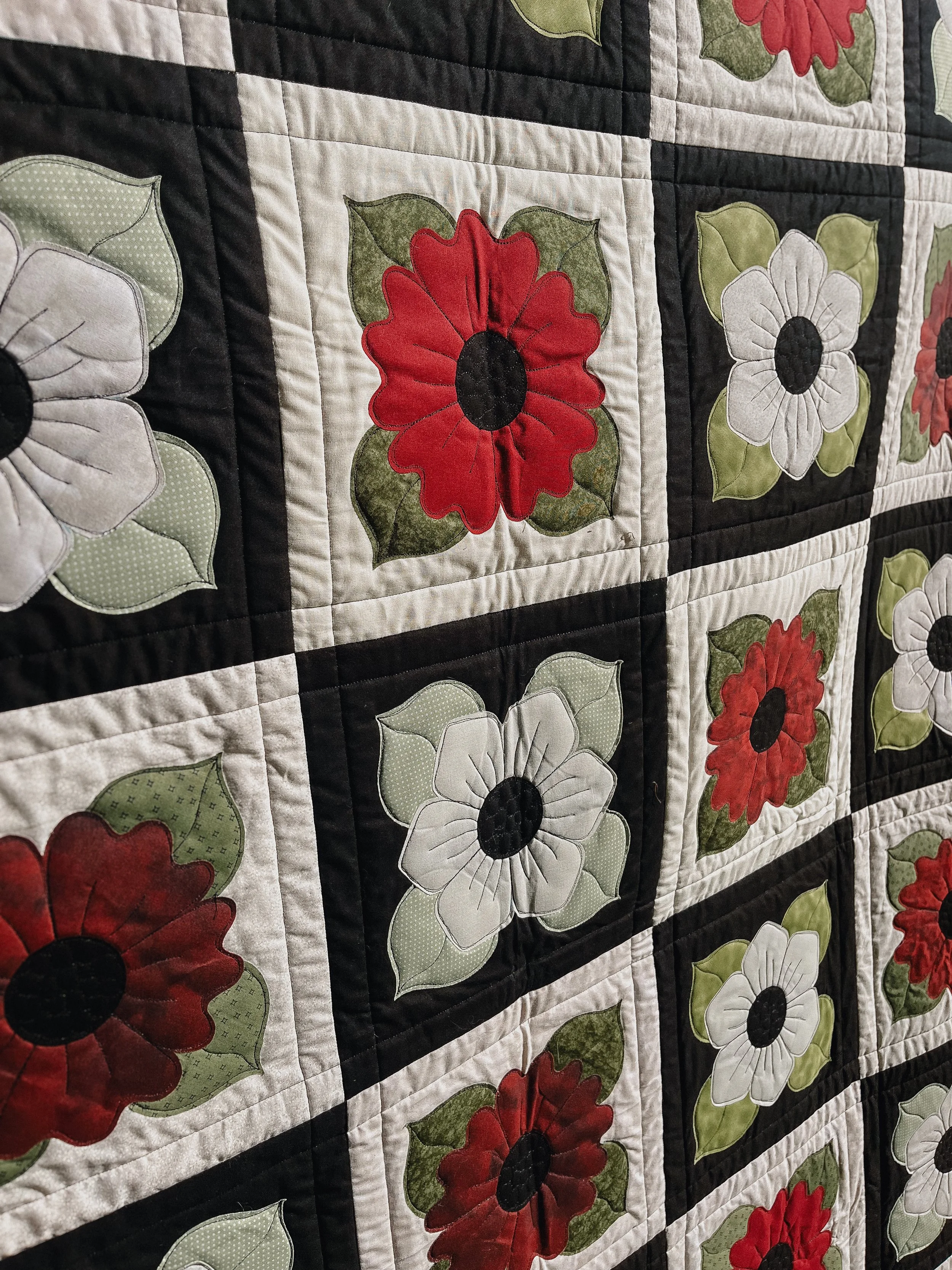 Categories: All Large/Bed Quilts Wearables Wall Hangings Small/Baby Quilts Throw Quilts All | Large/Bed Quilts | Wearables | Wall Hangings | Small/Baby Quilts | Throw Quilts | Custom label $15.00 Strawberry Fields Forever $350.00 Sunflower Jacket $80.00 "Hard to Kill" Vest $80.00 Sticks and Stars $250.00 Sold out Delft Blue $200.00 Poppies & Anemones $400.00 Cool Desert Nights $300.00 Snow Blooms $300.00 "It's not a phase, Mom!" $150.00 Florals on Florals $150.00 Quinault $150.00 Sweet Sampler $150.00 Dandelions $150.00